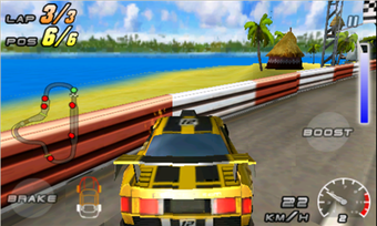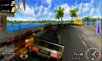 Lo que más impresiona en Raging Thunder 2 HD es su rapidez, que no va reñida con unos controles simples y que responden perfectamente.